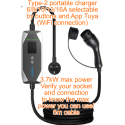 Prenosná nabíjačka pre elektromobily, typ 2 so zásuvkou Schuko, dĺžka 5 m, 6/8/10/13/16 A voliteľné a meniteľné počas nabíjania, s WiFi a aplikáciou Tuya pre smartfóny.